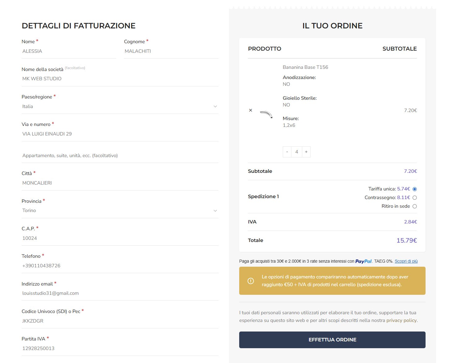 – Sviluppo carrello custom su esigenze specifiche del cliente (HTML, CSS, JS)